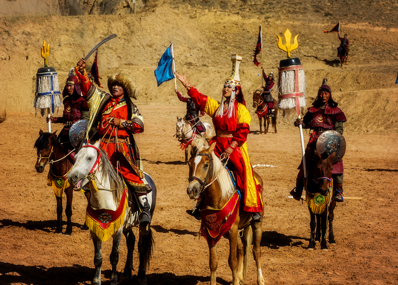 故事背景基本是这样,演员听说都是从外蒙古过来的,从小就在马背上长大的蒙古骑手们,也确实用他们精湛的骑术让我们大开眼界!