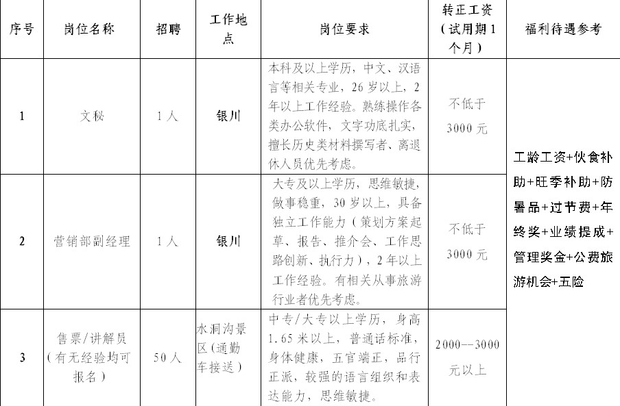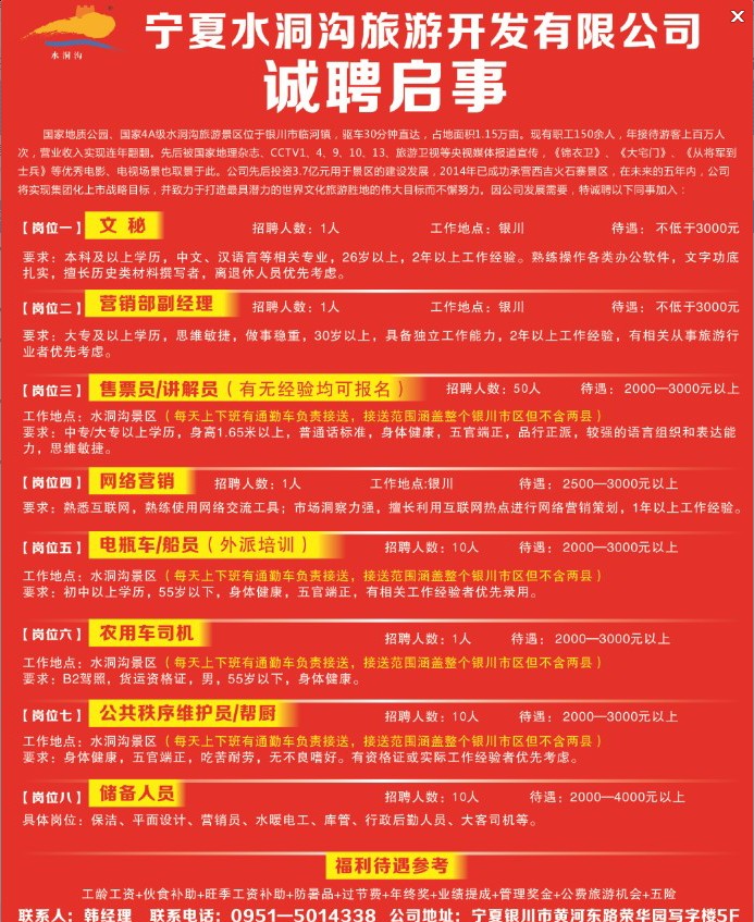宁夏水洞沟旅游开发有限公司招聘启事