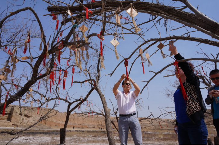 在三万年前先民们生活过的遗址旁祈福许愿