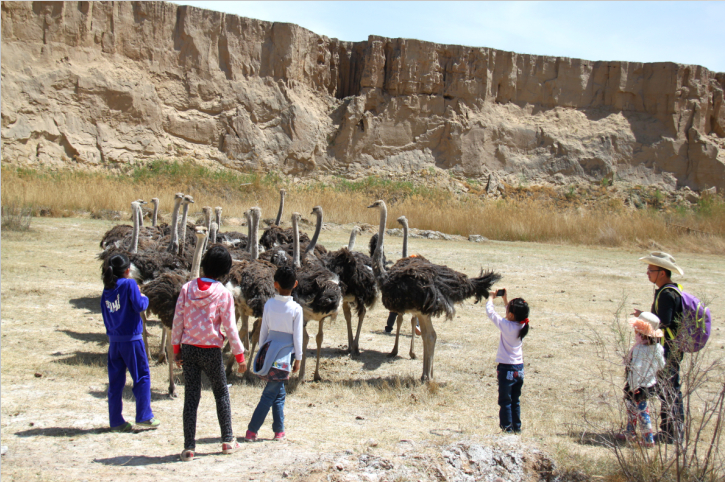 小朋友们与鸵鸟亲密接触
