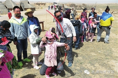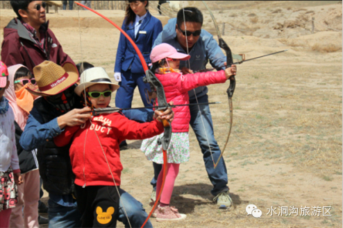在水洞沟宝贝们学习射箭