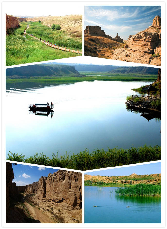 古清水河流经的水洞沟造就了池池湖水、绿绿苇色,游人可在芦花谷内漫步、鸳鸯湖里垂钓、红山湖上泛舟,享受水流塑造出的灵秀;被洪水切割而纵横交错的深沟巨壑、陡峭绝壁形成了大气磅礴的雅丹地貌、土林景观。