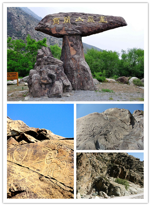 贺兰山岩画属全国重点文物保护单位,是中国游牧民族的艺术画廊 。贺兰山在古代是匈奴、鲜卑、突厥、回鹘、吐蕃、党项等北方少数民族驻牧游猎、生息繁衍的地方。他们把生产生活的场景,凿刻在贺兰山的岩石上,来表现对美好生活的向往与追求,再现了他们当时的审美观、社会习俗和生活情趣。在南北长200多公里的贺兰山腹地,就有20多处遗存岩画。其中最具有代表性的是贺兰口岩画。国家AAAA级旅游景区。
