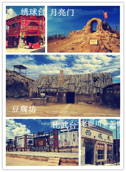 镇北堡影视城在中国众多的影视城中以古朴、原始、粗犷、荒凉、民间化为特色,是中国三大影视城之一,也是中国西部唯一著名影视城,被誉为“东方好莱坞”。这里已拍摄了获得国际国内大奖的《牧马人》、《红高梁》、《黄河绝恋》等以及著名影视片《大话西游》、《新龙门客栈》、《书剑恩仇录》、《逆水寒》等六十多部影视剧。著名景点有月亮门、百花堂、牛魔王宫、老银川一条街等。