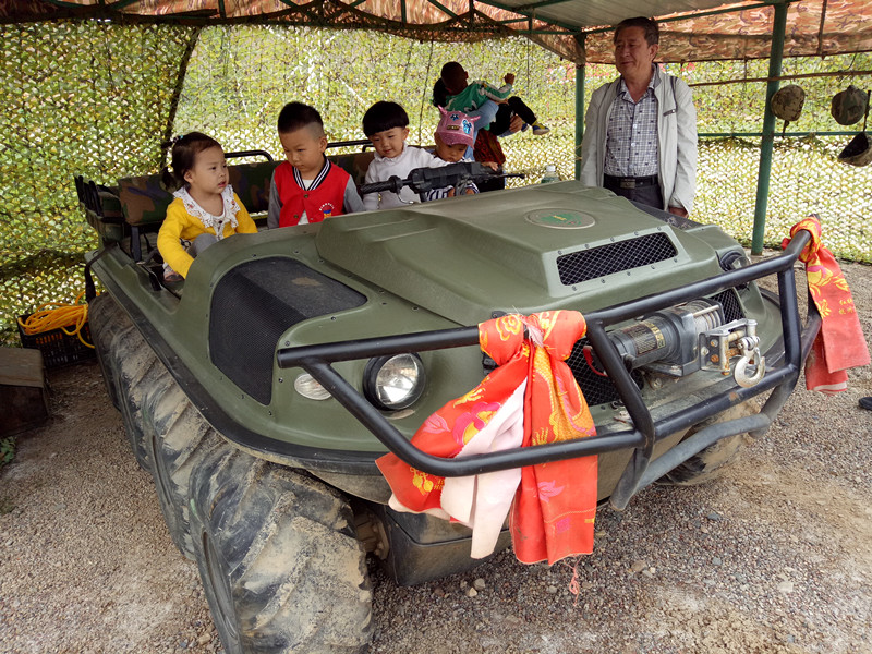 乘坐水陆两栖车,跨越障碍物,穿越激流