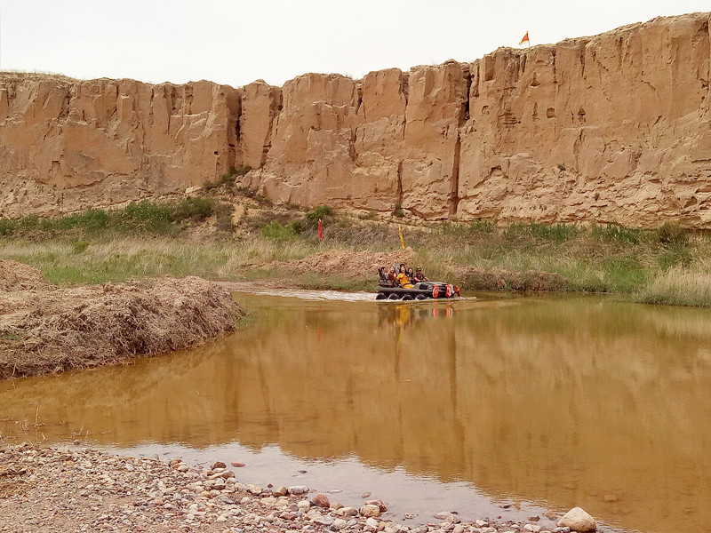 乘坐水陆两栖车,跨越障碍物,穿越激流