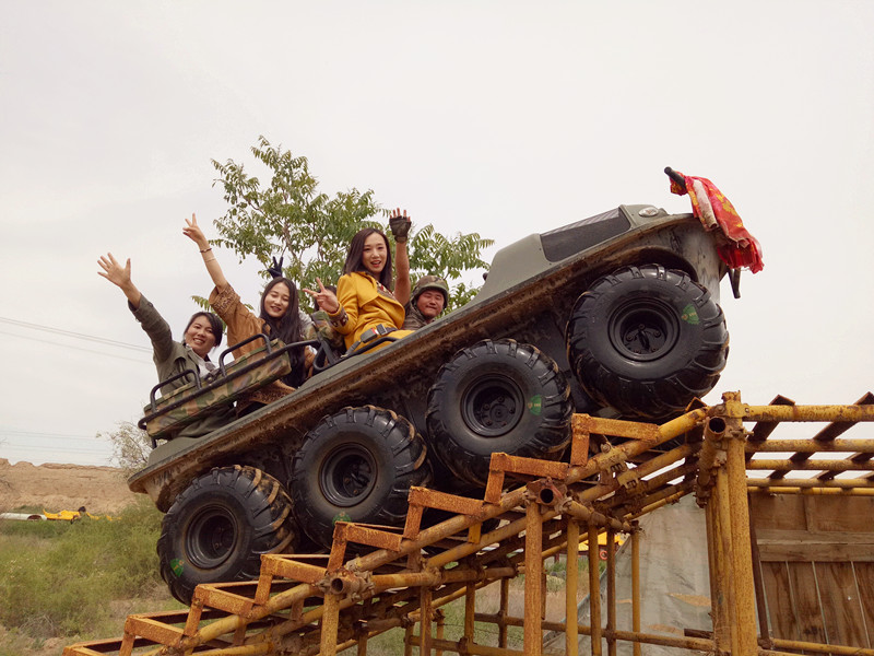乘坐水陆两栖车,跨越障碍物,穿越激流
