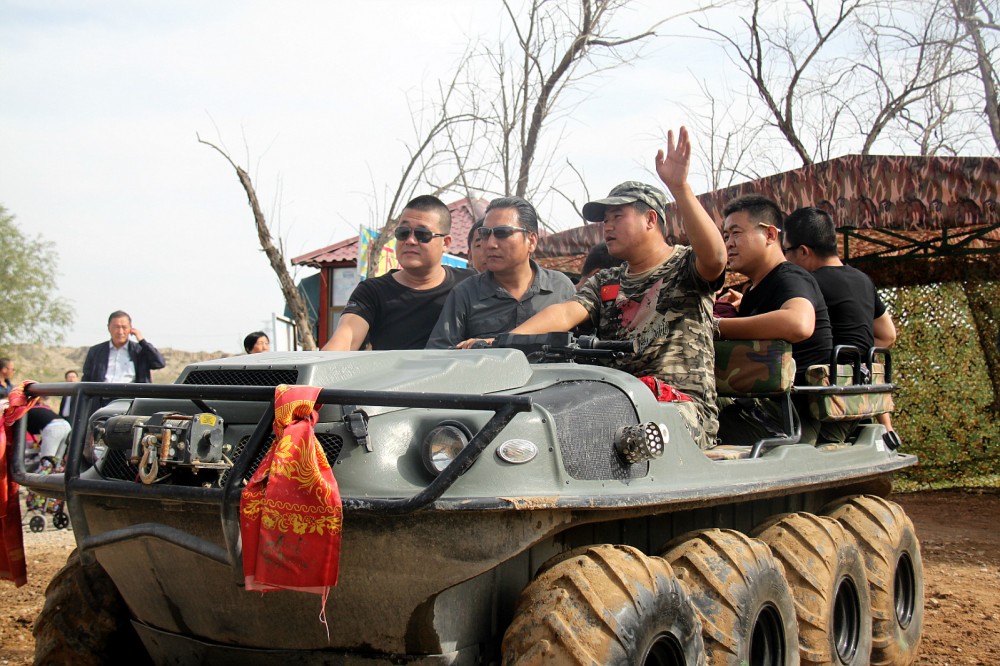 乘坐水陆两栖车,跨越障碍物,穿越激流
